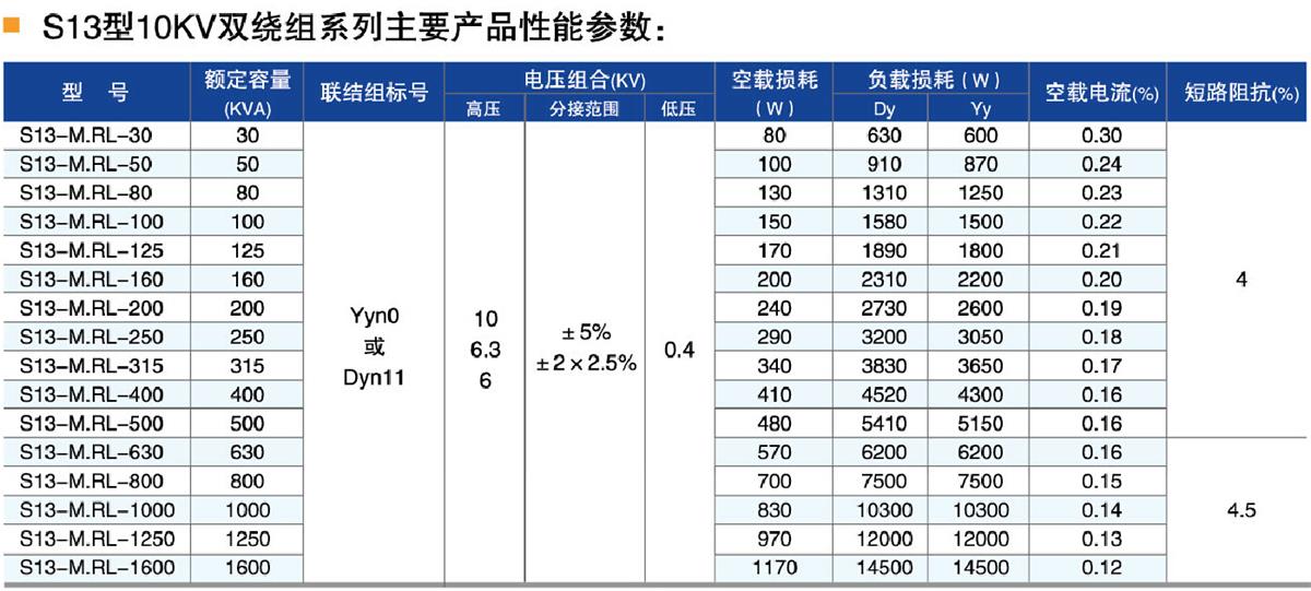 S13型是我公司在原S11配電變壓器基礎上,通過新材料、新工藝的研究運用及自主創新與技術引進結合的方式,通過對鐵心及線圈結構的優化創新設計,達到降低空載損耗及噪音的目的。自主開發的產品。