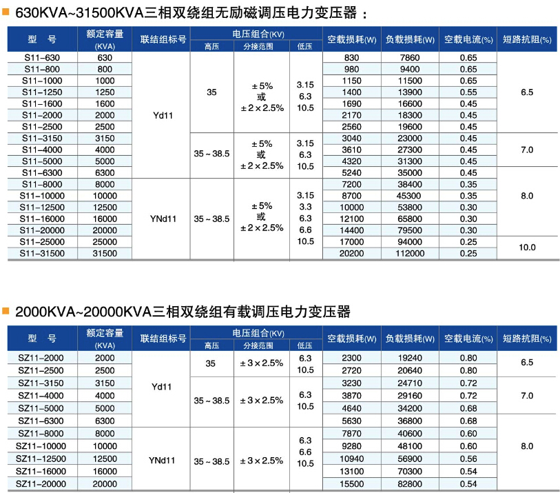 35kV系列油浸式電力變壓器在設計上比較先進,在材料、結構和工藝上進行了大幅度的改進和提高。高低壓夾件采用鋼拉帶或上梁及側梁拉緊,形成堅固的框架結構,增強鐵芯夾緊力和耐受運輸沖擊能力。抗短路能力強,外觀造型美觀,運行可靠,損耗低,噪聲小,達到國外同類產品先進水平。本公司生產的SZ11-8000/35變壓器樣機一次性通過國家變壓器檢測**進行的突發短路試驗,高低壓線圈設縱向油道有利于散熱,可大幅度降低銅油溫差及線圈內部的*熱點溫升。